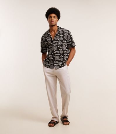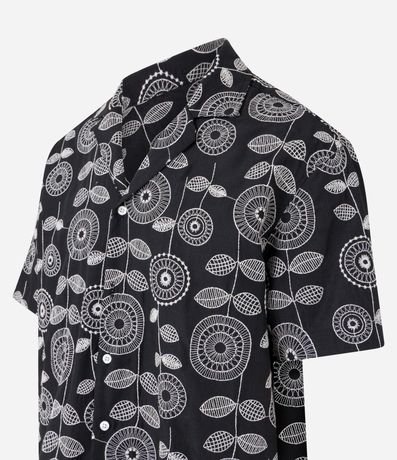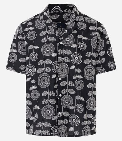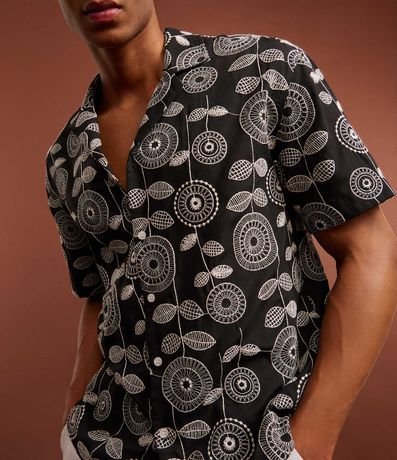 Ref: Camisa masculina confeccionada em jacquard mais sustentável através de boas práticas ambientais. Possui gola lapela, manga curta, abotoamento frontal e estampa bordada de folhagens.