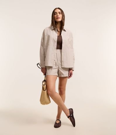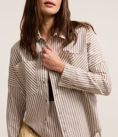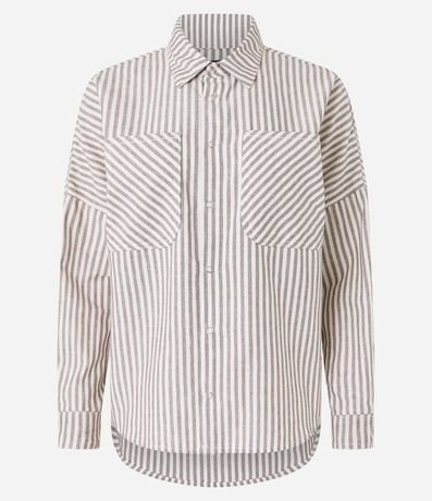 Camisa regular com manga longa, listrada com bolsos no peito e confeccionada em jeans com algodão bci, mais sustentável.