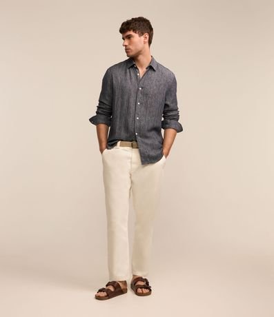 Ref: Camisa masculina, confeccionada em linho. Peça com gola colarinho, abotoamento e mangas longas, que permitem um toque sofisticado para o seu guarda roupa.