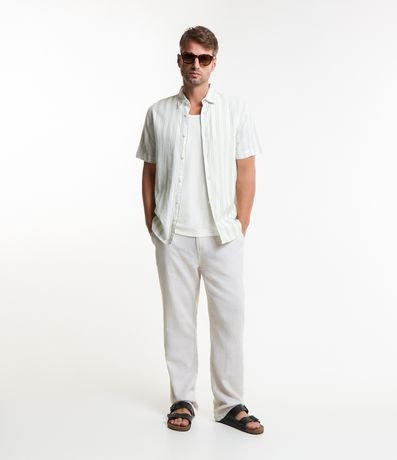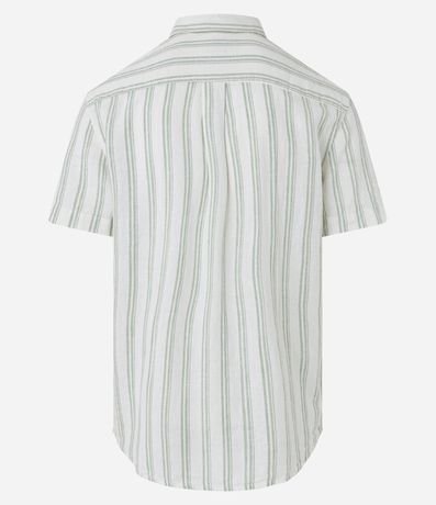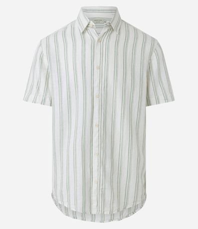 Ref: Camisa masculina, confecciona em linho e viscose, com gola lapela, abotoamento frontal e estampa listrada.