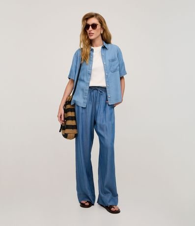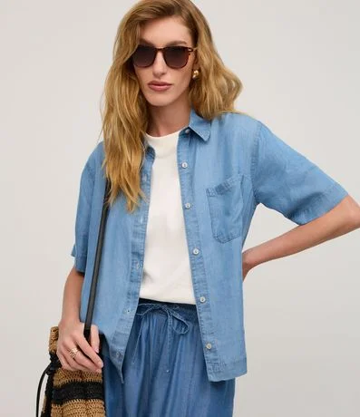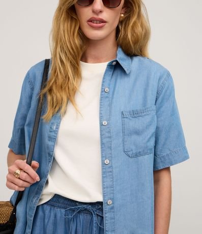Ref: Camisa de mangas curtas, confeccionada em liocel, com colarinho na gola, abotoamento frontal e bolso no peito. Este produto possui liocel mais sustentável em sua composição, sendo ambientalmente mais responsável.