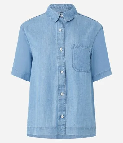 Ref: Camisa de mangas curtas, confeccionada em liocel, com colarinho na gola, abotoamento frontal e bolso no peito. Este produto possui liocel mais sustentável em sua composição, sendo ambientalmente mais responsável.