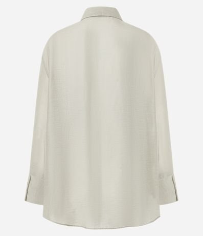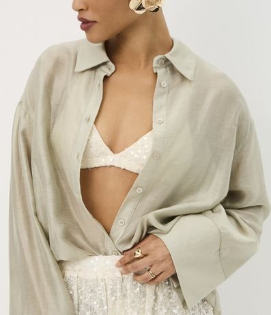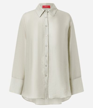 Camisa confeccionado em liocel com 10%  linho certificado e boas práticas ambientais, oferecendo toque suave e excelente controle de umidade, comprimento alongado e abotoamento frontal. Possui gola colarinho, mangas longas com punho largo, garantindo elegância e conforto.