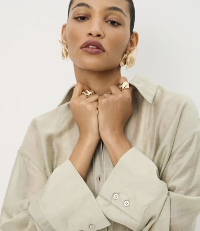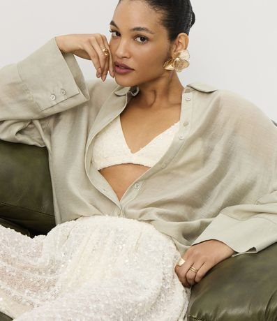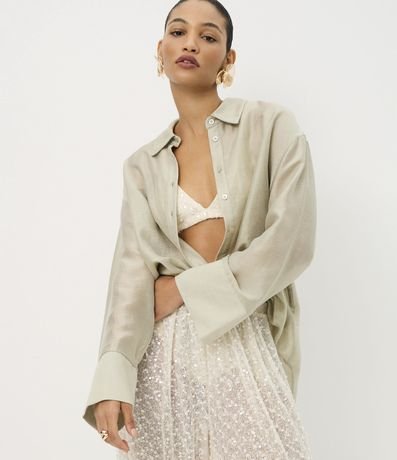 Camisa em Liocel com Linho e Abotoamento Frontal