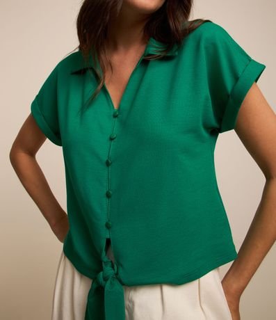 Ref: Blusa de mangas curtas com colarinho na gola, decote V, abotoamento frontal e dobras nas mangas Confeccionado em viscose mais sustentável.
