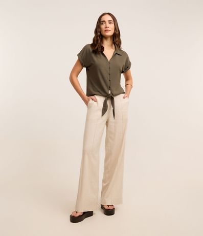 Ref: Blusa de mangas curtas com colarinho na gola, decote V, abotoamento frontal e dobras nas mangas Confeccionado em viscose mais sustentável.