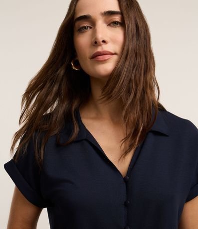 Ref: Blusa de mangas curtas com colarinho na gola, decote V, abotoamento frontal e dobras nas mangas Confeccionado em viscose mais sustentável.