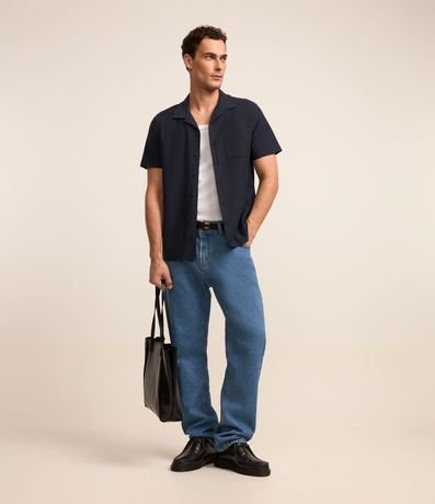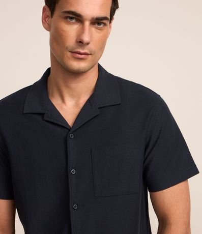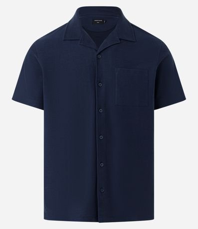 Camisa masculina, confeccionada em piquet texturizado, com lapela, abotoamento frontal, manga curta, bolso.
