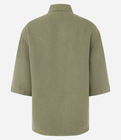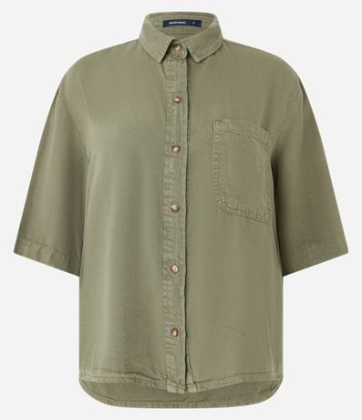 Camisa em Sarja com Abotoamento Frontal e Bolso
