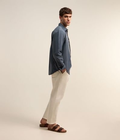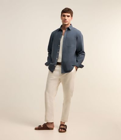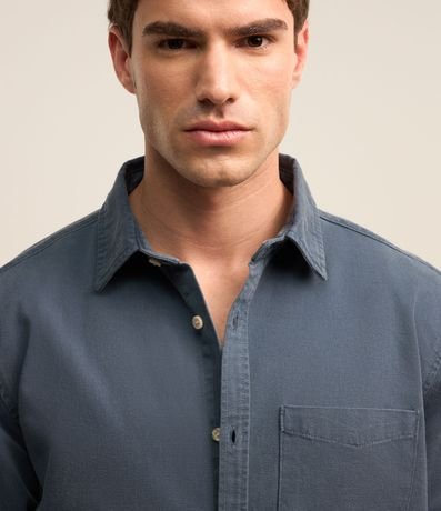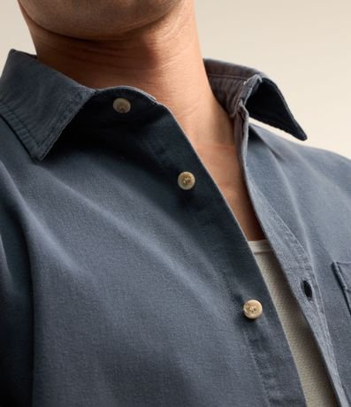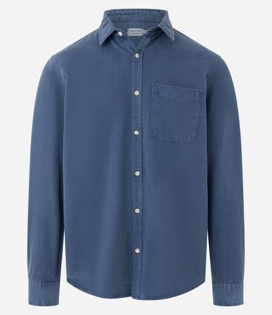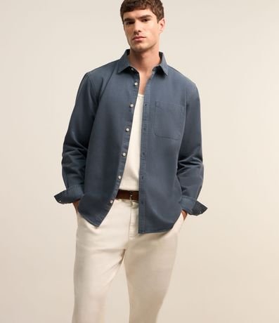 Ref: Camisa masculina, confeccionada em sarja, gola lapela, abotoamento frontal e mangas longas.