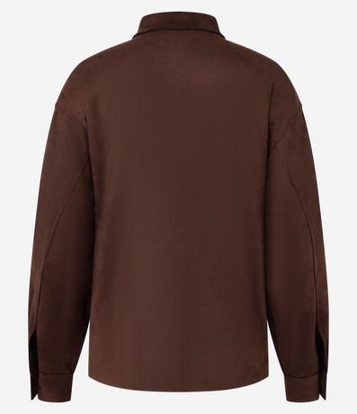 Ref: Camisa feminina confeccionada em suede, com gola colarinho, mangas longas, bolsos frontais e fechamento por botões contratantes.