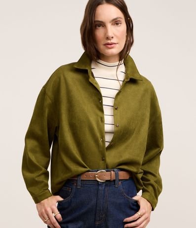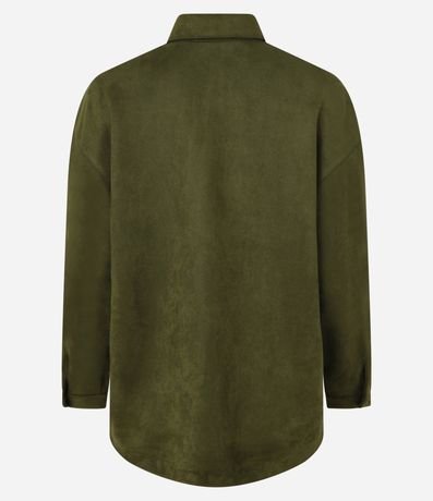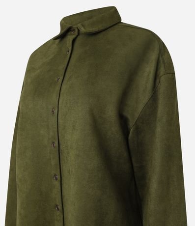 Ref: Camisa de mangas longas, confeccionada em suede, com colarinho na gola e botões frontais para fechamento. Esta camisa possui cavas deslocadas.