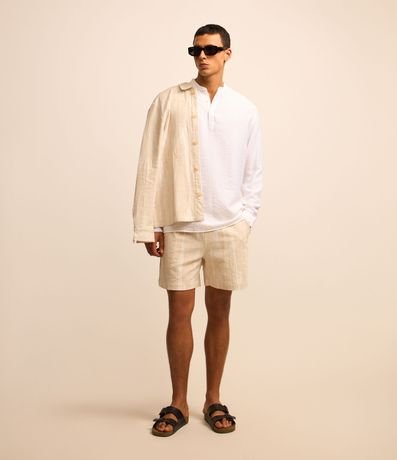 Ref: Camisa masculina, confeccionada em material mais sustentável, com gola padre, abotoamento, manga longa. Peça acetinada.