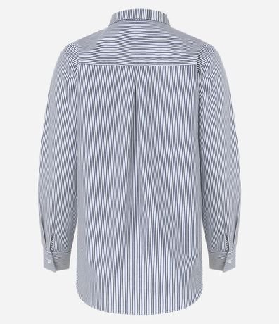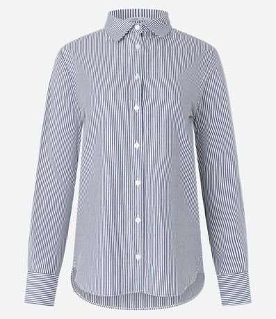 Ref: Camisa feminina, confeccionada em tricoline, com gola lapela, abotoamento frontal, mangas longas e estampa listras em fio tinto.