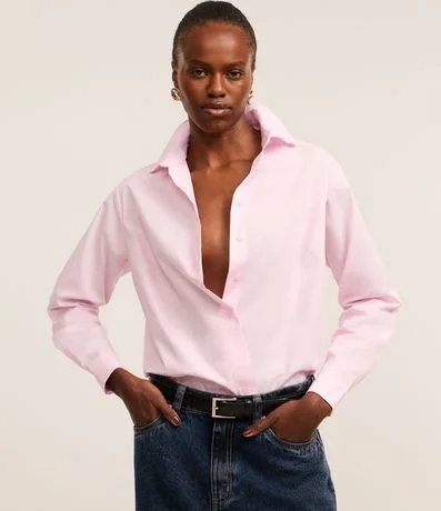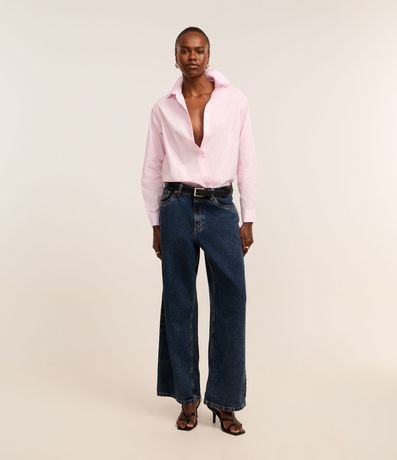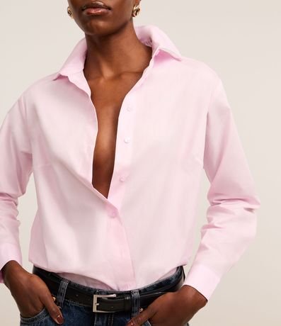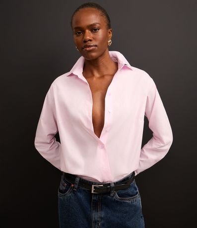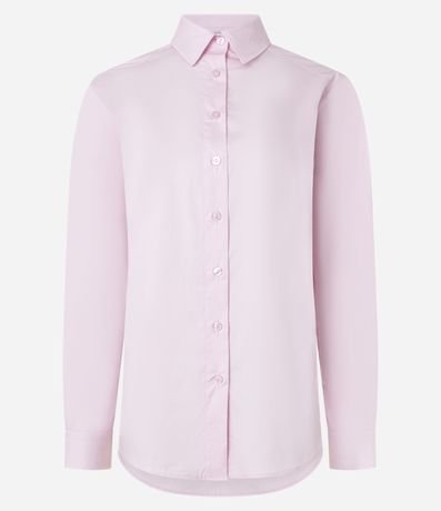 Ref: Camisa feminina, confeccionada em tricoline, com gola lapela, abotoamento frontal, mangas longas e superfície sem estampa.