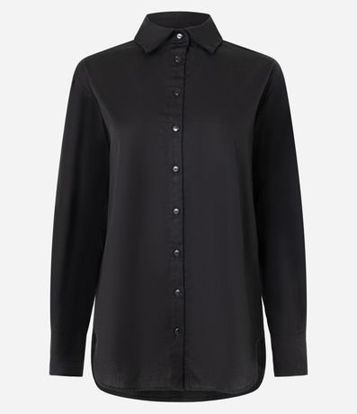 Ref: Camisa manga longa, confeccionado em tricoline com boas práticas ambientais e produzida com algodão bci. Possui abotoamento frontal e barra arredondada.