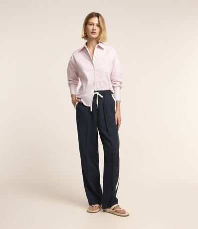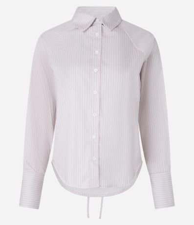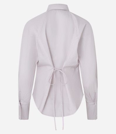 Ref: Camisa feminina manga longa, confeccionada em tricoline, gola com colarinho, amarração nas costas e estampa de listras.
