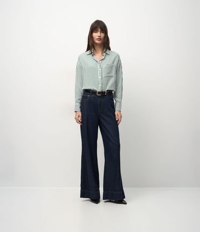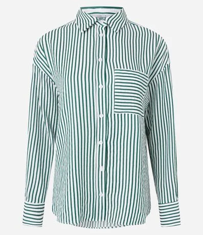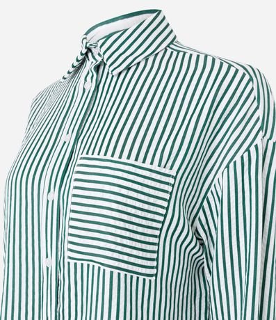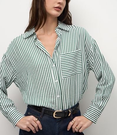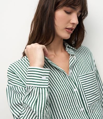 Ref: Camisa feminina em tricoline com estampa de listras verticais por toda a peça. A frente traz bolso quadrado, gola clássica, fechamento por botões e mangas longas com punho estruturado.