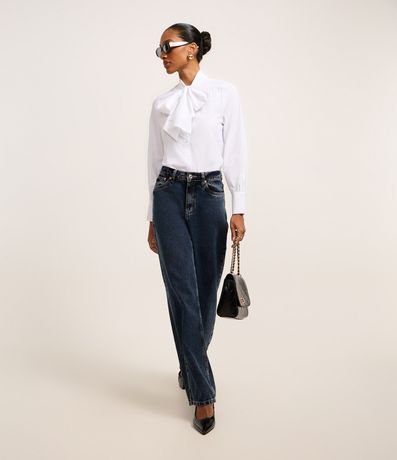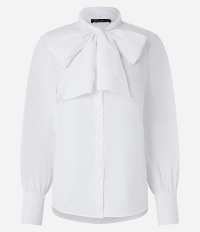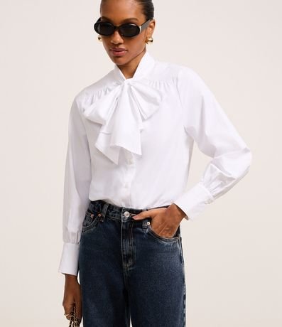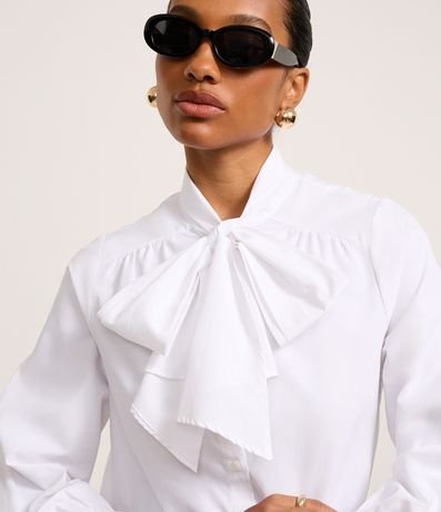 Ref: Camisa de mangas longas confeccionada em tricoline de poliéster e algodão mais sustentável com abotoamento frontal. O toque de sofisticação desta camisa fica a encargo do laço robusto na gola.