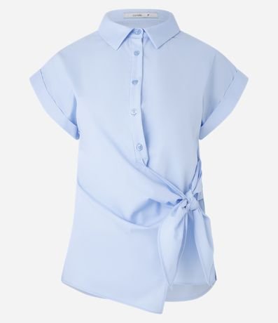 Ref: Camisa de mangas curtas confeccionada em algodão mais sustentável com colarinho e botões na vista além de amarração na região frontal.