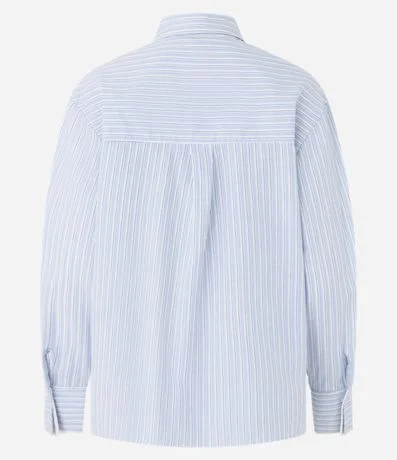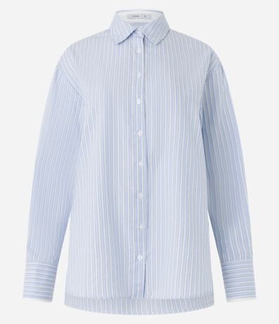 Camisa feminina, confeccionado em tricoline, com gola lapela, abotoamento frontal, mangas longas, punhos duplos e estampa listrada.