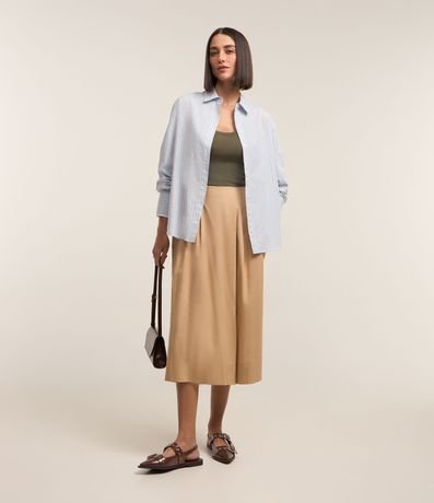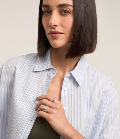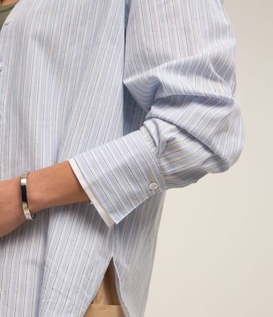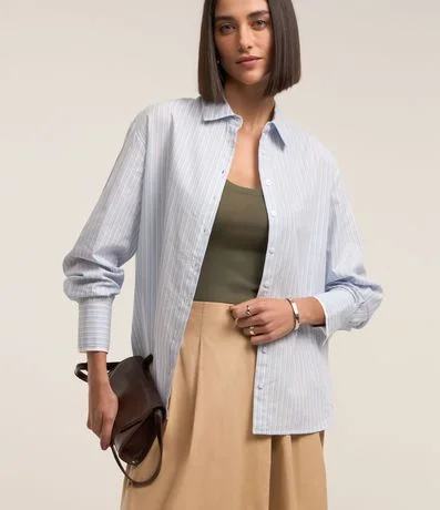 Camisa em Tricoline com Punho Duplo e Estampa Listrada