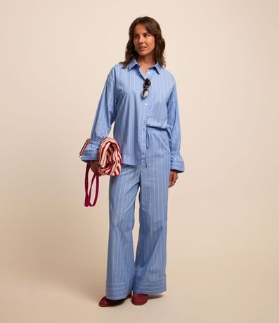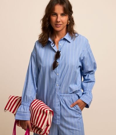 Ref: Camisa confeccionada em tricoline, com punhos ajustados e com estampa de listras vesrticais.