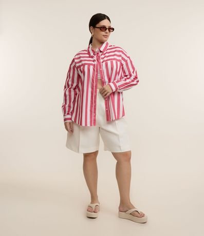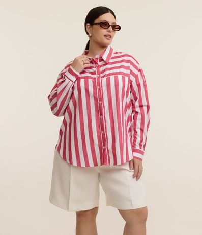 Ref: Camisa plus size confeccionada em tricoline de algodão mais sustentável. A peça tem gola tradicional, mangas longas, abotoamento frontal e pala na frente e atrás.