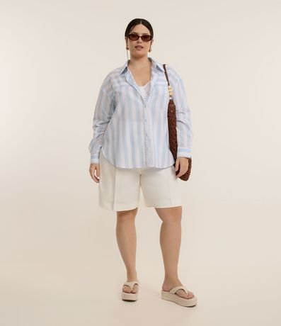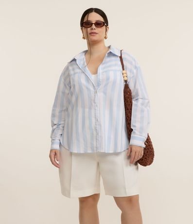 Camisa em Tricoline Listrada Curve & Plus Size
