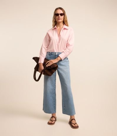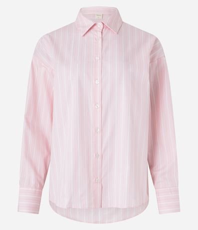 Ref: Camisa feminina confeccionada em tricoline, com gola colarinho e mangas longas. Possui fechamento por botões frontais, punhos ajustados e estampa listrada a fio tinto.