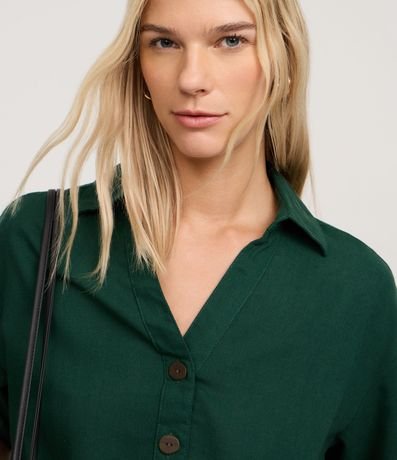 Ref: Camisa de mangas curtas, confeccionada em viscolinho, com colarinho na gola e botões frontais. Este produto possui viscose certificada em sua composição, sendo ambientalmente mais responsável.