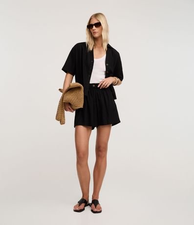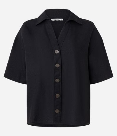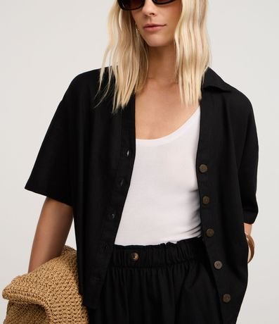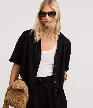 Camisa de mangas curtas, confeccionada em viscolinho, com colarinho na gola e botões frontais. Este produto possui viscose certificada em sua composição, sendo ambientalmente mais responsável.