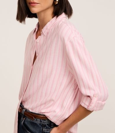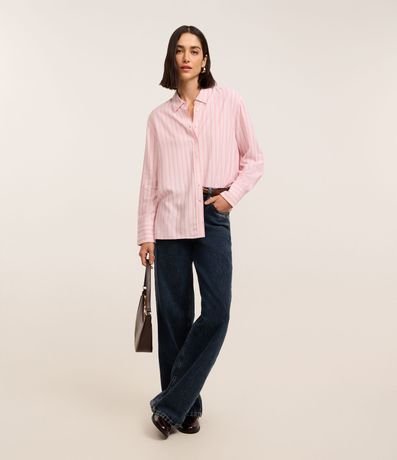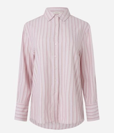 Ref: Camisa feminina confeccionada em viscolinho com lapela, abotoamento frontal, manga longa e estampa fio tinto.