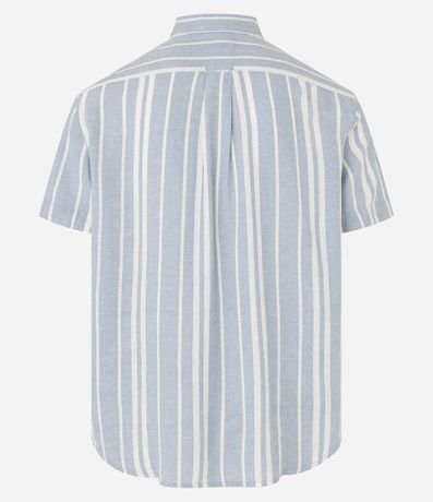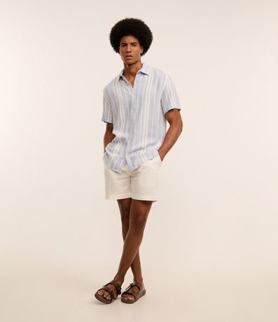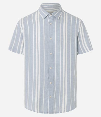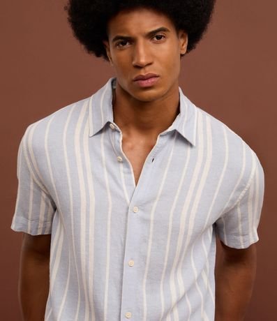 Ref: Camisa masculina, confeccionada em viscolinho, com gola colarinho e manga curta. Peça estampada com listras verticais.