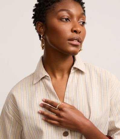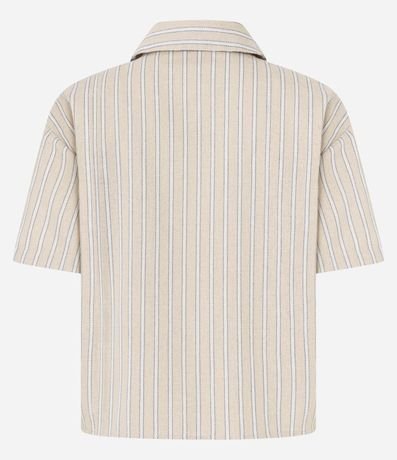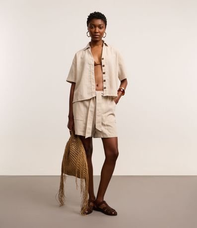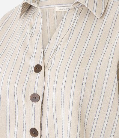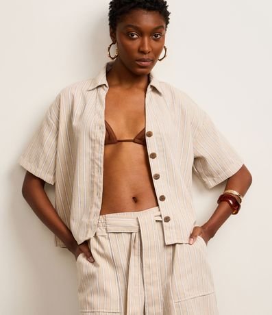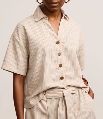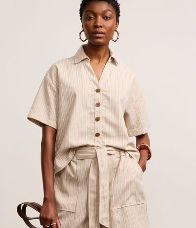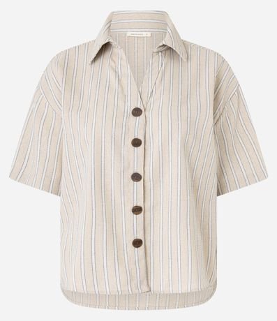 Ref: Camisa de mangas curtas, confeccionada em tecido plano com 10% de linho, com colarinho na gola e botões frontais. Peça tem listras verticais com fios tintos e costura aparente. Este produto possui viscose certificada em sua composição, sendo ambientalmente mais responsável.