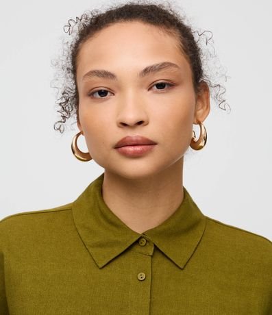 Camisa em Viscolinho com Manga Longa e Abotoamento