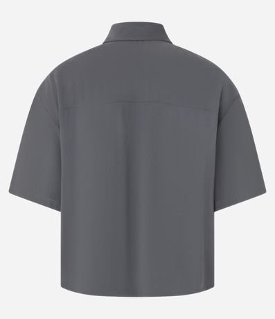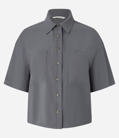Camisa de mangas curtas amplas, confeccionada em viscose, com colarinho na gola, abotoamento frontal e bolsos no peito. Este produto possui viscose certificada em sua composição, além de ter sido produzido através de processos mais sustentáveis com boas práticas ambientais, sendo ambientalmente mais responsável.