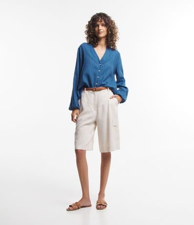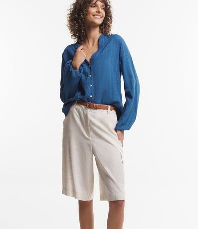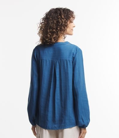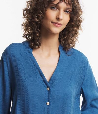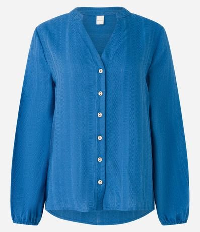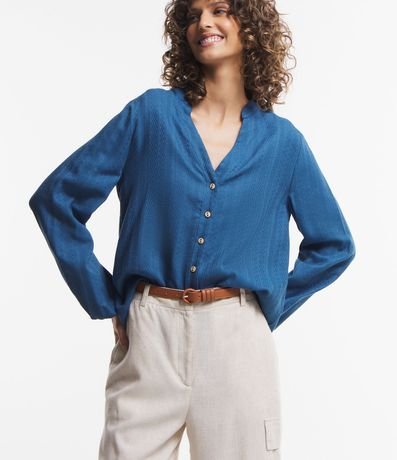 Ref: Camisa em viscose, com gola padre, abertura V, abotoamento frontal, mangas longas e textura maquinetada.