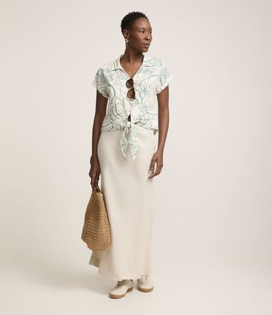 Ref: Blusa de mangas curtas com colarinho na gola, decote V, abotoamento frontal e estampa de flores em contornos. Confeccionado em viscose mais sustentável.
