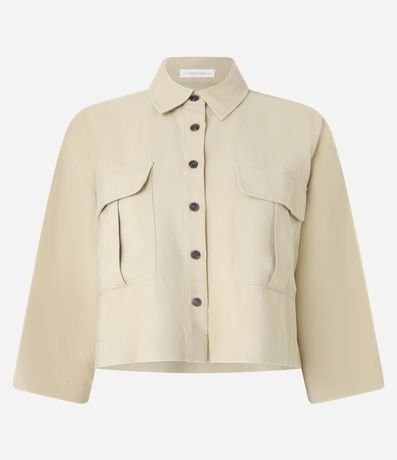 Ref: Camisa feminina manga 3/4, confeccionada em viscose, com botões e bolsos frontais.
