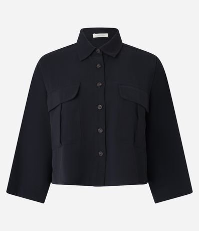Ref: Camisa feminina manga 3/4, confeccionada em viscose, com botões e bolsos frontais.