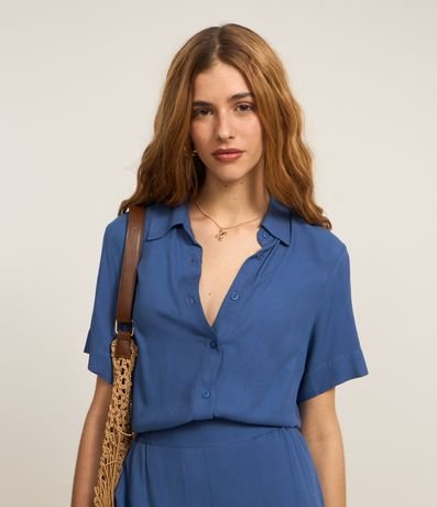 Ref: Camisa manga curta, confeccionada em viscose certificada com abotoamento frontal e sem estampa.