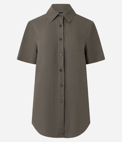 Camisa manga curta, confeccionada em viscose certificada com abotoamento frontal e sem estampa.