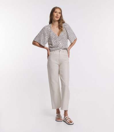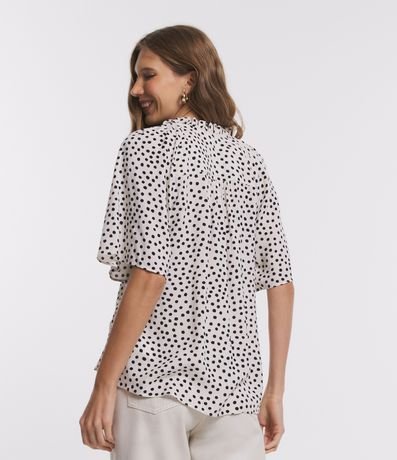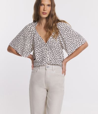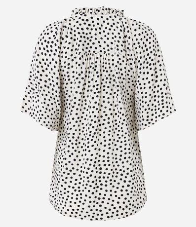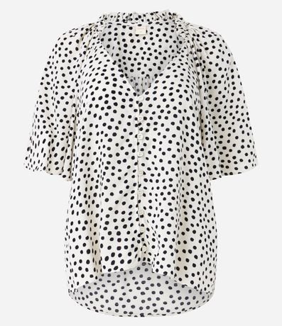 Ref: Camisa em viscose, com decote V, abotoamento frontal, mangas curtas e estampa poá.