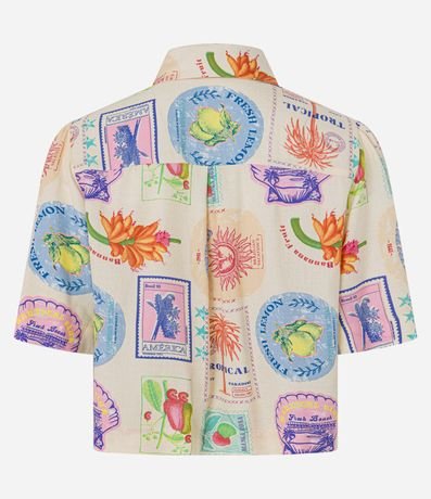 Ref: Camisa confeccionada em viscose mais sustentável, garantindo leveza e sustentabilidade, no modelo oversized. Possui gola com colarinho, abotoamento frontal, mangas curtas com pregas e estampa fullprint inspirada no estilo de colagens, trazendo cores vibrantes e toque artístico. Ideal para looks casuais com personalidade e conforto.