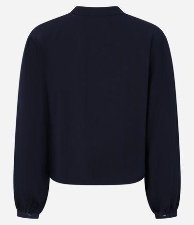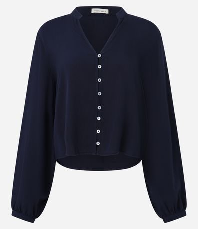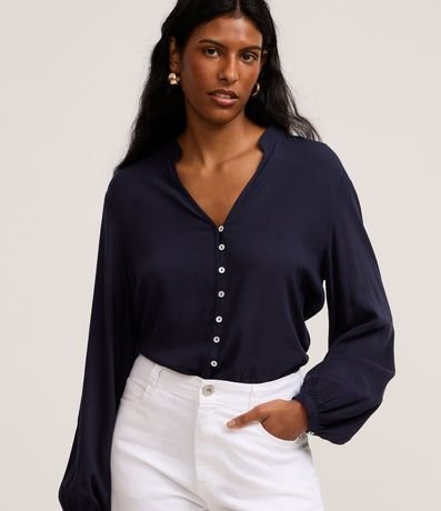 Ref: Camisa feminina confeccionada com material mais sustentável. Possui gola padre, fechamento por botões frontais, mangas longas com punho ajustado e sem estampa.