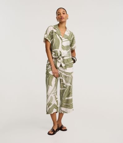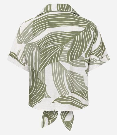 Ref: Camisa de gola polo e mangas curtas, confeccionada em viscose, com abotoamento frontal, amarração na barra e estampa de folhagem. Este produto possui material mais sustentável em sua composição, sendo ambientalmente mais responsável.