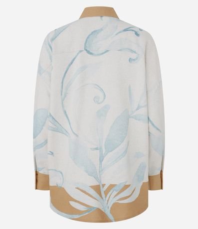 Camisa em Viscose e Linho com Estampa Folhagens Contrastantes