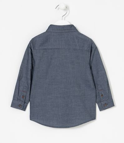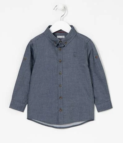 Camisa infantil, básica, manga longa, confeccionada em material responsável e abotoamento frontal.