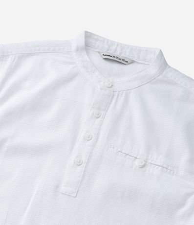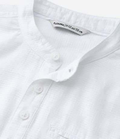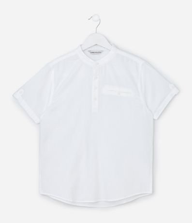 Ref: Camisa infantil confeccionada em algodão mais sustentável, no modelo bata. Possui gola padre, com abotoamento, manga curta, bolsinho e texturizada.